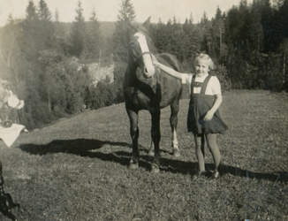 9. Maj-Britt fick en egen häst i Sverige, som hette Max / Maj-Britt Max-hevosensa kanssa Ruotsissa / Maj-Britt got a horse from her Swedish father. His name is Max.